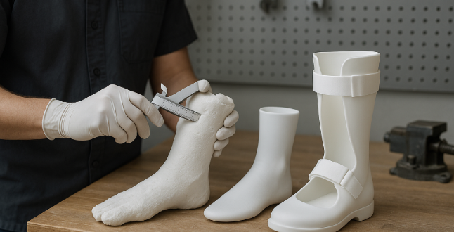 当センターでは、身体計測や石膏型取りなどの専門設備を整え、医師の指示書に基づき、ミリ単位で調整された装具を制作しています。